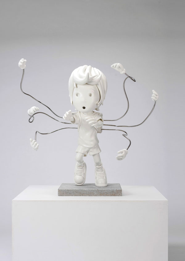 Come la tecnologia, anche il linguaggio scelto dall’artista veronese è soprattutto uno strumento, un pretesto espressivo, per indagare a fondo (e in maniera comprensibile a tutti) il miracolo dell’innocenza e il suo carattere potenzialmente esplosivo. Ecco perché l’iconografia dei suoi dipinti e delle sue sculture pullula di mostri e chimere, esseri deformi e creature ibride che incarnano aspetti inquietanti oppure straordinari dell’esperienza infantile.